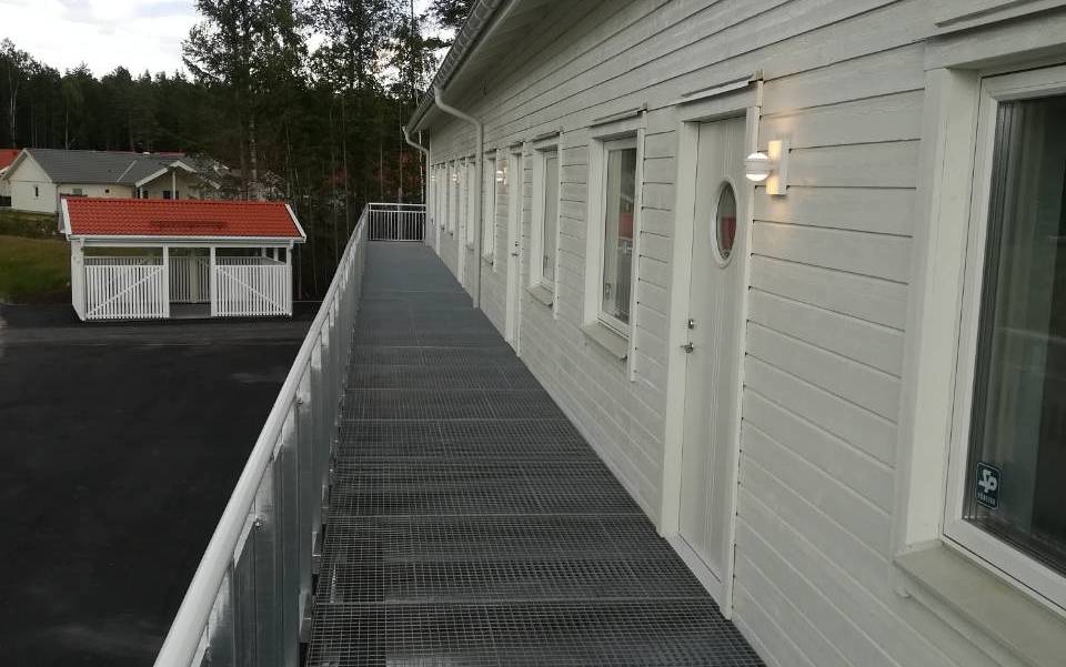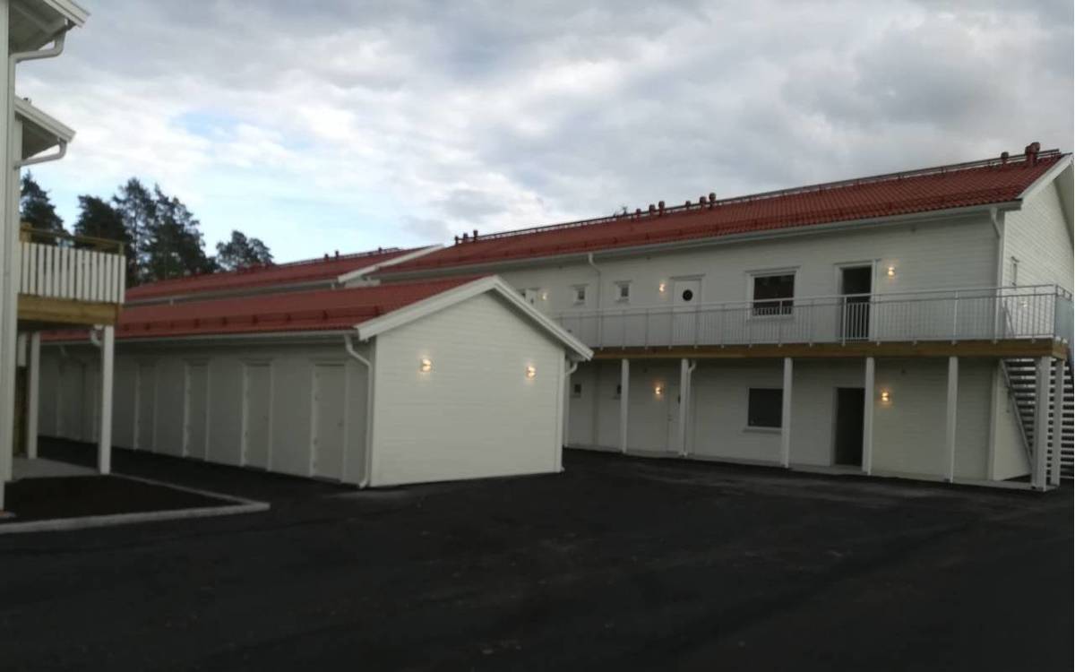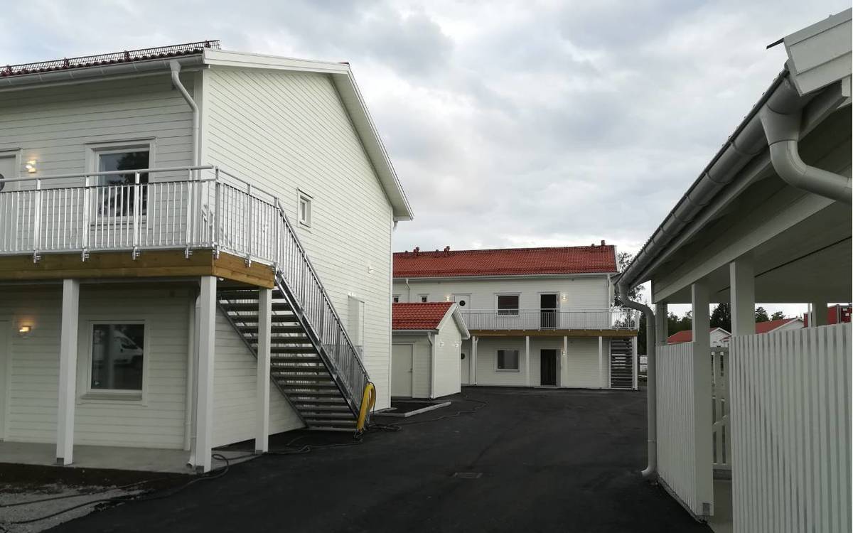 Stambeni kompleks se sastoji od 3 montažne kuće sa po 8 stambenih jedinica ukupne površine 1800 metara kvadratnih. Kroz prizemlje se prostiru ostave od 190 kvadratnih metara, dok su na spratu apartmani, povezani spoljašnjim terasama i stepeništem. Nezavisno od objekata nalaze se i skladišta za otpad u vidu odvojenih jedinica koje se svojim dizajnom ukplapaju u jednu celinu ovog naselja. Firma Domtera se i ovog puta potrudila da sve radove izvede u dogovorenom roku pored teških vremenskih uslova koji se mogu očekivati kada je teritorija Švedske u pitanju.