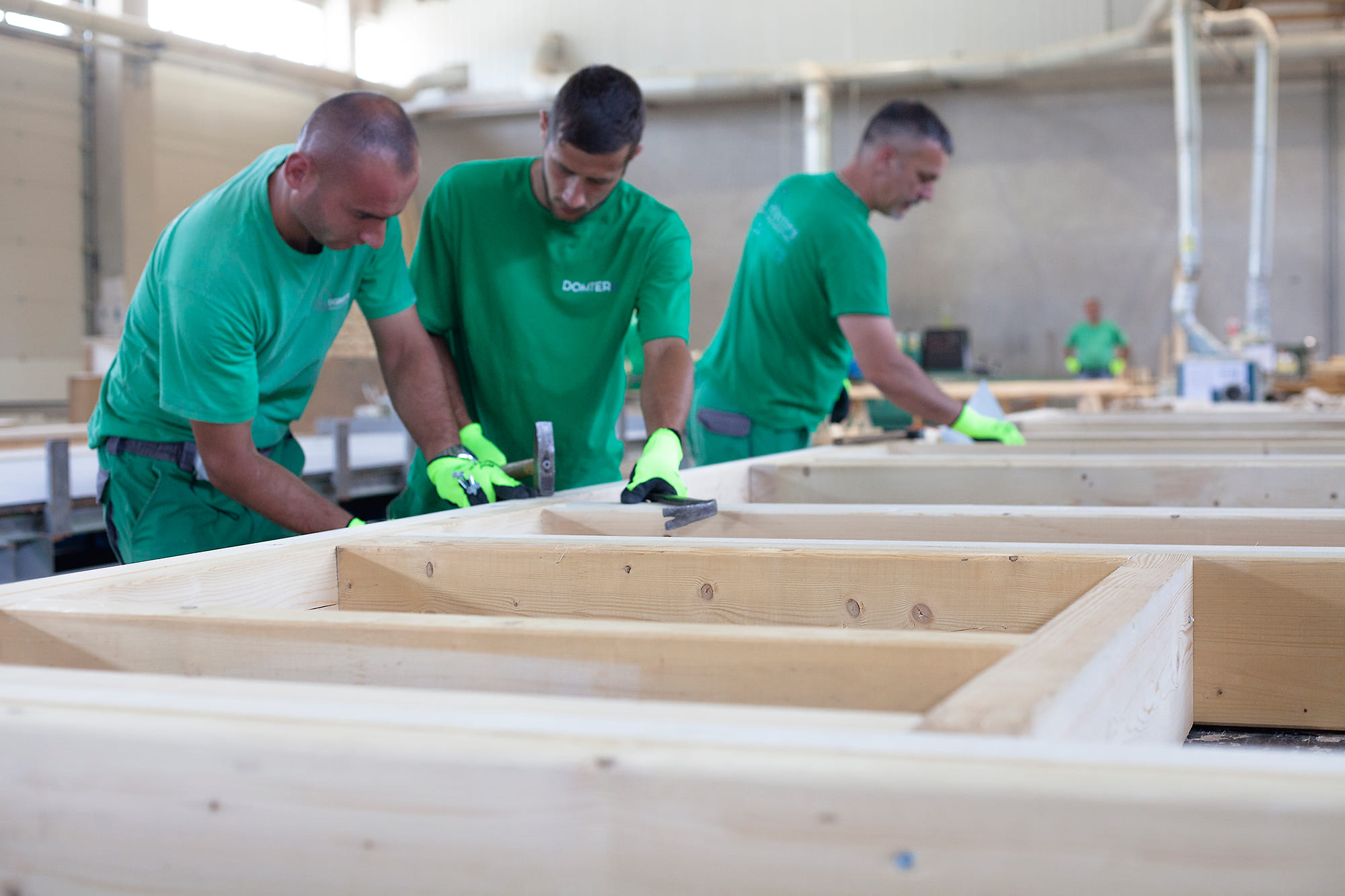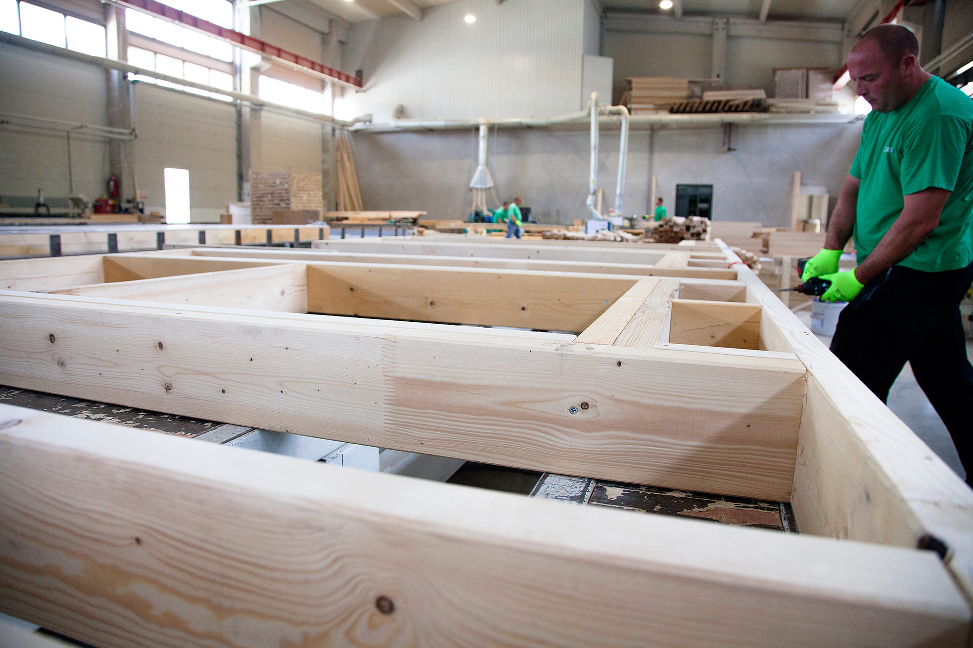 Zaokružen proces proizvodnje jer ono što nas izdvaja od ostalih proizvođača montažnih kuća. Jedini na tržištu Srbije imamo kompletnu proizvodnju, od drveta iz trupca do, preko sušenja rezane građe, pa sve do njihove implementacije u montažne kuće.